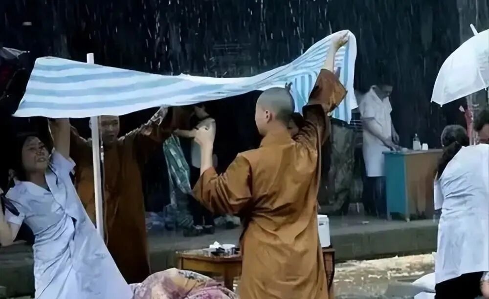 就此素全法师带着僧人,将原本用来给佛像这雨的雨棚撤了下来,给这些灾民们遮雨。僧人们一听,都持反对意见。
