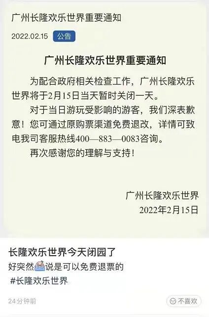 而紧接着,又曝出了一个重磅消息,广州长隆忽然又被曝出要进行关闭,消息为:
