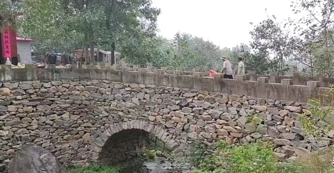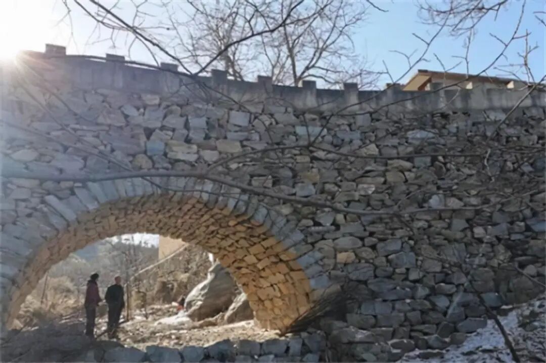 当你一进这个村庄,映入眼帘的就是一座石拱桥,它安静地屹立在村口。这座桥的长度大概有20多米,横跨在河沟上面。仔细一看,这座石拱桥的桥身基本都是用山石建造的,高度大概在6米左右,桥下还有一个直径约6米的桥洞。