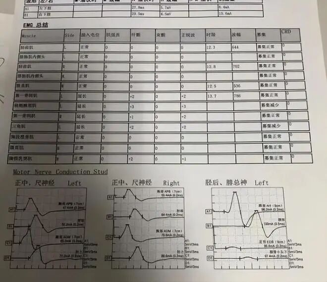 2015年,经过肌肉疾病肌电图显示,刘文燕的运动神经元指标发生变化。