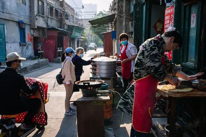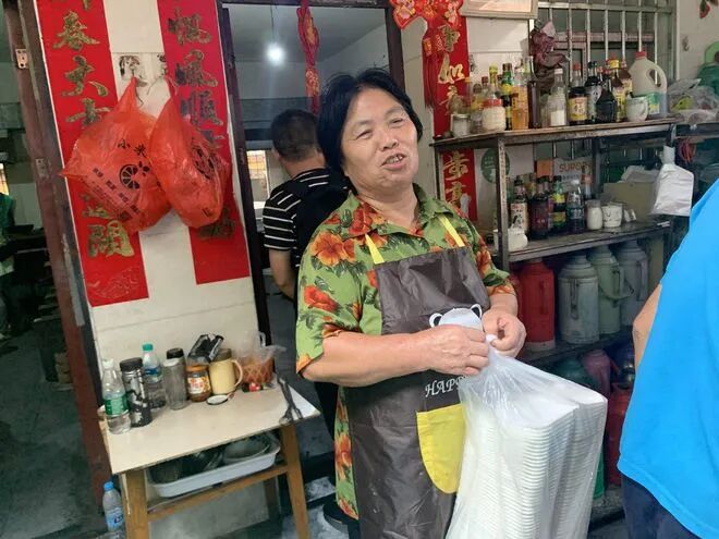 当天也是如此,眼看着铺子前面渐渐变得冷清,老万拿来了还没卖完的早餐,和妻子一起分着吃了。