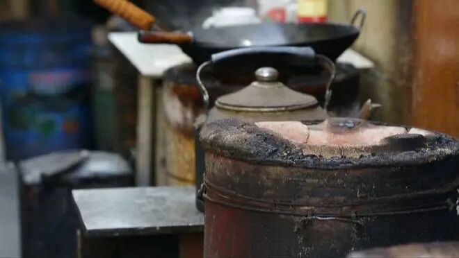 为了维持早点铺的生意,老万每天天不亮就起来揉面团、榨豆浆、炸油条,把早点铺经营得是有声有色。