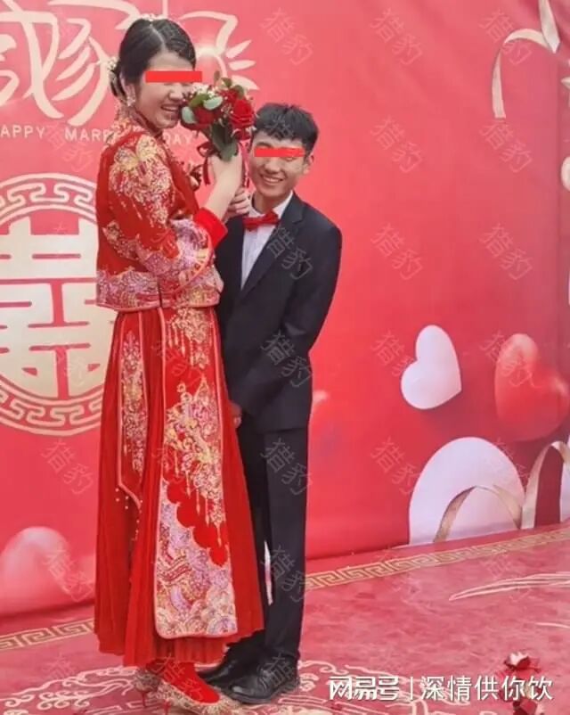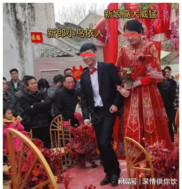 现场宾客被新娘的身高惊讶到了,如果不看脸和打扮还以为他们二人角色对调,新娘的身高远远高于新郎,体态高大威猛,体态一个顶俩!