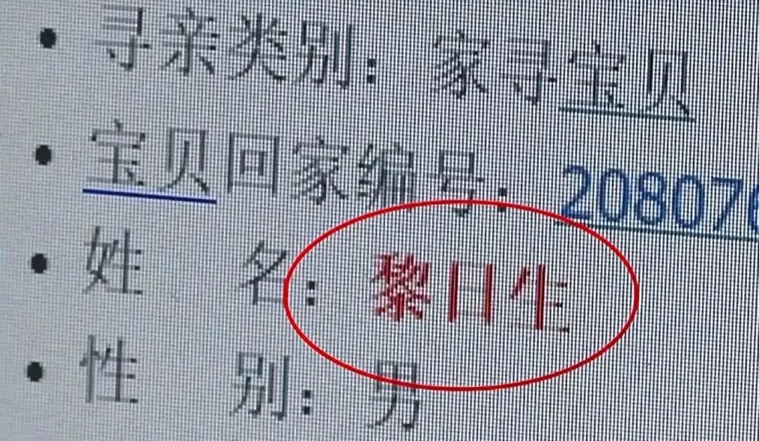 丢失的孩子名叫“黎日生”,是他的小儿子。