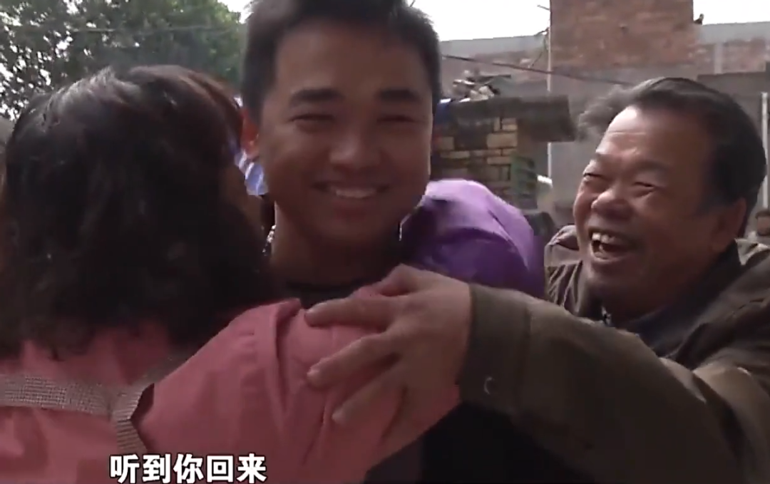父子俩时隔13年再度相见,当即拥抱在一起。