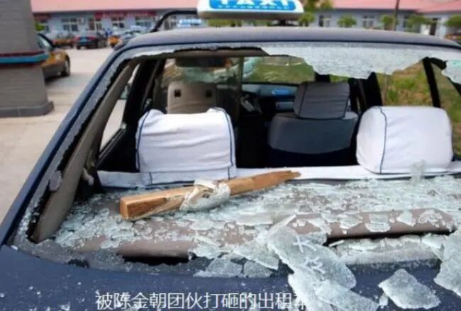 陈金朝当时就愤怒了,抄起一把斧头对着出租车的左前玻璃就砸了过去。他手下的小弟们也开始“乒乒乓乓”地砸着出租车。里面的乘客哪见过这个阵势,吓得当场就昏了过去。