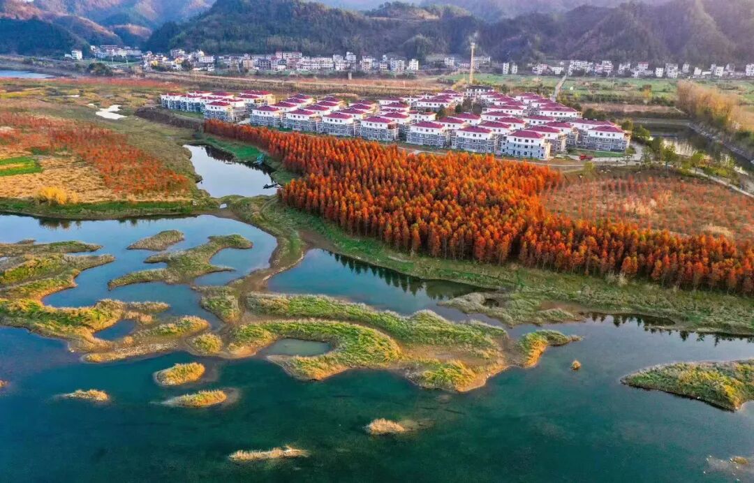 ▲12月18日,浙江省杭州市淳安县汾口镇红星村,多彩田园、生态湿地与新农居点共同构成一幅美丽生态画卷。(视觉中国)