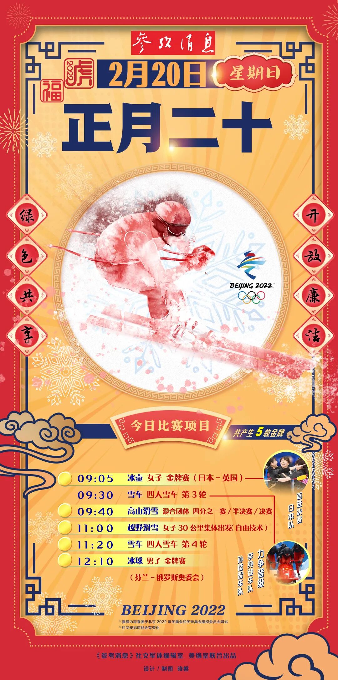 最后,小编为您送上冬奥日历,请查收。记得关注《参考消息》的冬奥专版哦。