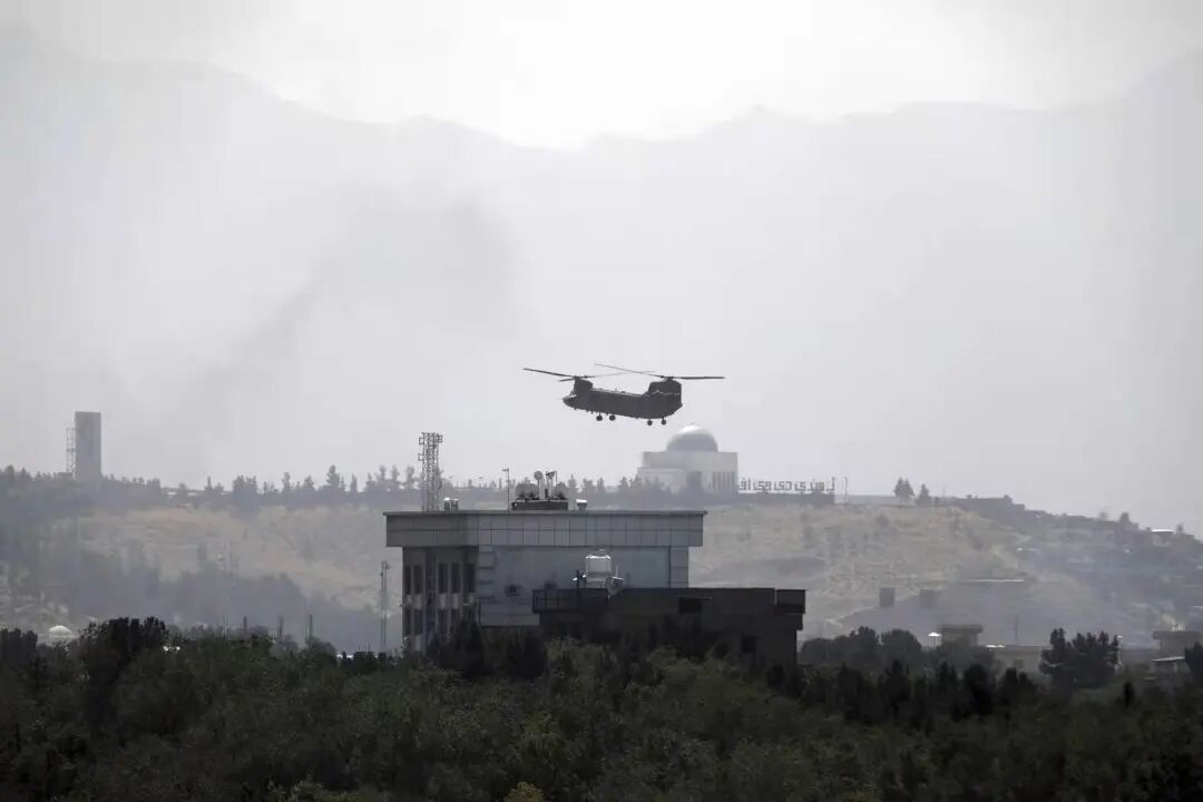 ▲资料图片:2021年8月15日,阿富汗喀布尔,一架美国直升机从美国驻阿大使馆附近飞过。(人民视觉)