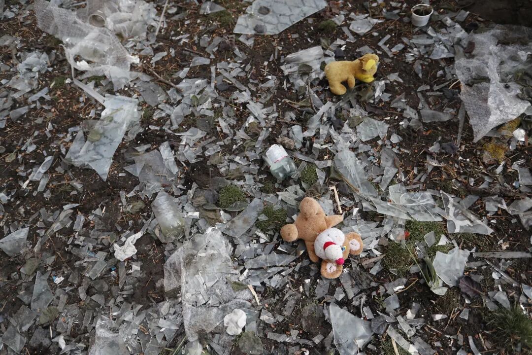 ▲这是3月18日在马里乌波尔拍摄的破碎的玻璃和玩具。新华社发(维克托摄)