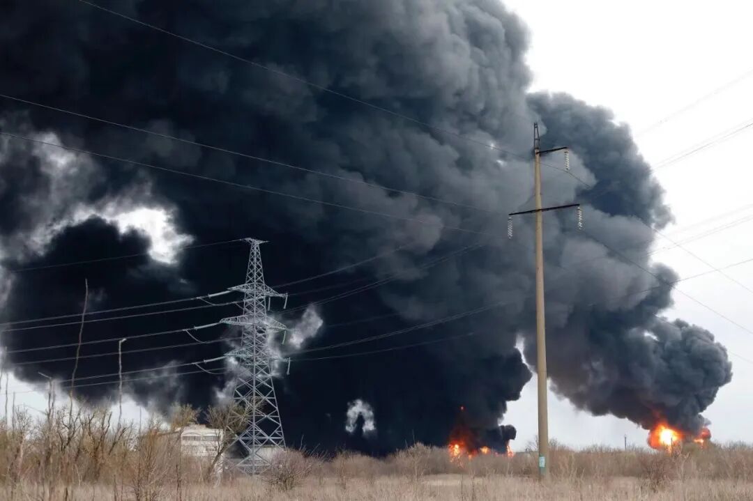 ▲4月1日,浓烟在俄罗斯别尔哥罗德市的一处石油设施上空升起。俄罗斯媒体4月1日援引俄地方官员的话报道说,两架乌克兰军用直升机空袭了俄罗斯别尔哥罗德市的一处石油设施,并引发火灾。新华社/塔斯社