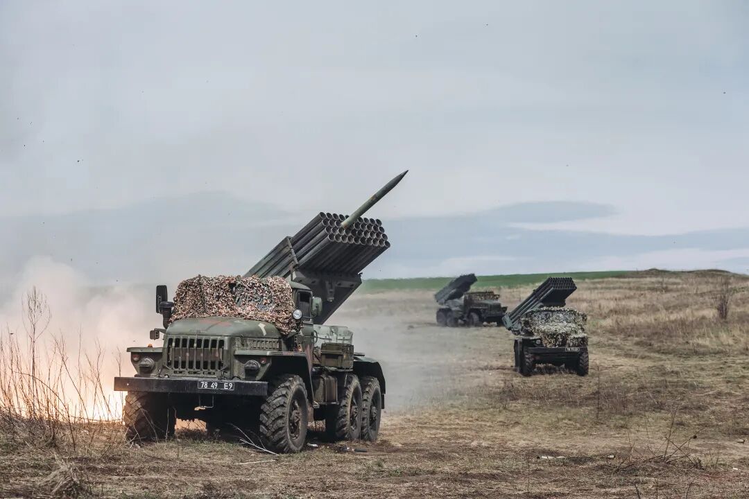 ▲4月10日,乌克兰军队在顿巴斯地区发射火箭弹。新华社发(迭戈·埃雷拉摄)