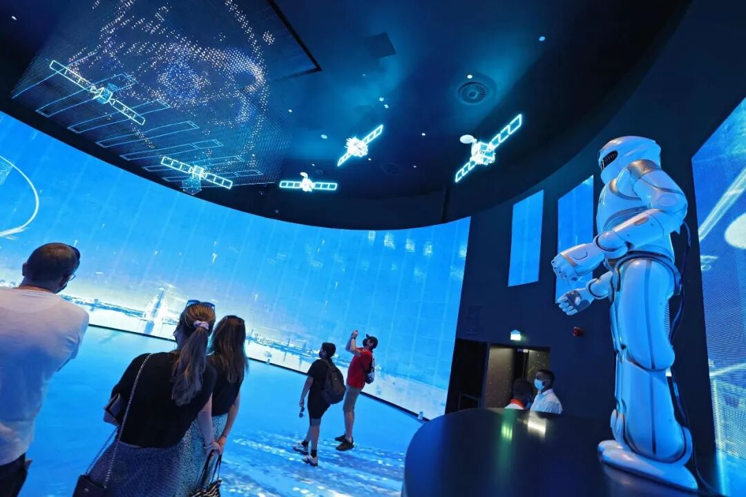 ▲当地时间2021年10月3日,阿联酋迪拜,2020迪拜世博会中国馆内,人们在观看大屏幕。(视觉中国)