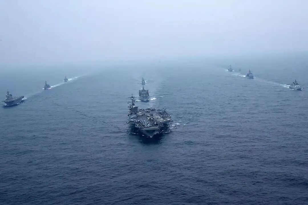 ▲当地时间2021年10月12日,孟加拉湾海域,美国、印度、日本、澳大利亚四国海军举行“马拉巴尔2021”第二阶段海上联合演习。(人民视觉)