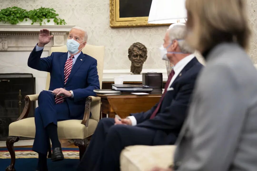 ▲2021年2月11日,美国总统拜登在白宫对两党参议员团体表示,中国投入了大量资金在交通、环境等领域。他说,如果美国不继续发展基础设施,中国将会超越美国。(人民视觉)