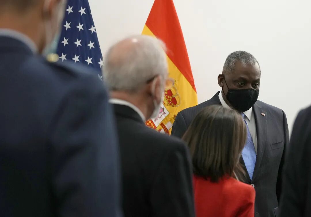 ▲10月21日,美国国防部长劳埃德·奥斯汀抵达布鲁塞尔北约总部,与西班牙国防部长玛丽亚·费尔南德斯举行会晤。北约各国国防部长将举行秋季会议,评估北约与莫斯科关系全面恶化的后果。(人民视觉)
