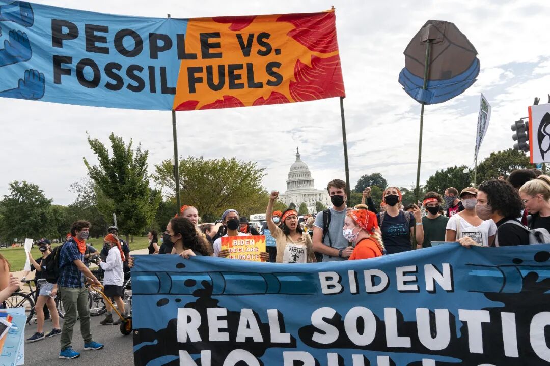 ▲当地时间2021年10月15日,美国首都华盛顿特区,数百名抗议者在市中心就气候问题举行集会示威。(人民视觉)