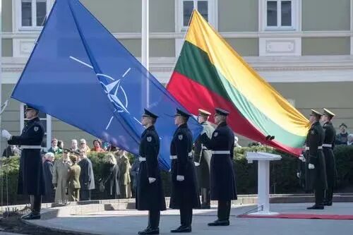 ▲资料图片:在立陶宛首都维尔纽斯,士兵们准备升起北约旗帜和立陶宛国旗。新华社发(阿尔弗雷达斯·普里亚迪斯摄)