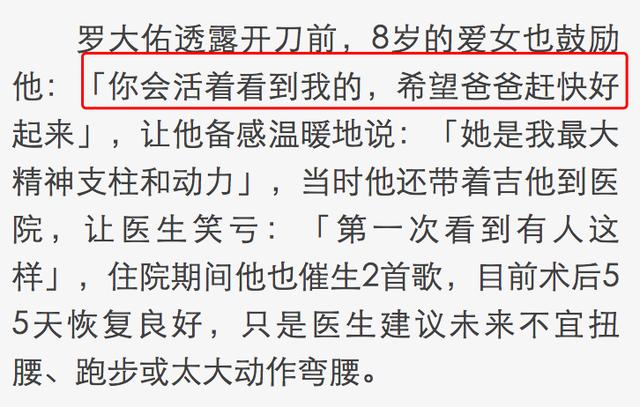 那一次手术是有风险的,而女儿的存在就是罗大佑的精神支柱,他积极治疗,努力做康复训练,偶尔写写歌。