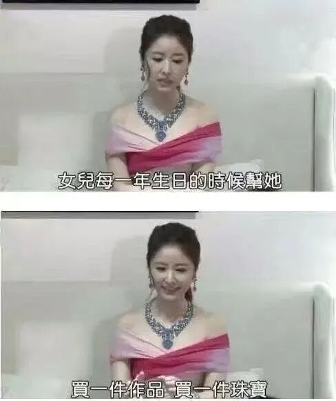 她表示项链是留给女儿的,并宣称以后女儿每年过生日,她都会为女儿购置一套珠宝,直到十八岁为止。