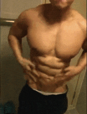 从镜头远远看去,他的身材比例好,线条也匀称,腹肌也蛮清晰。