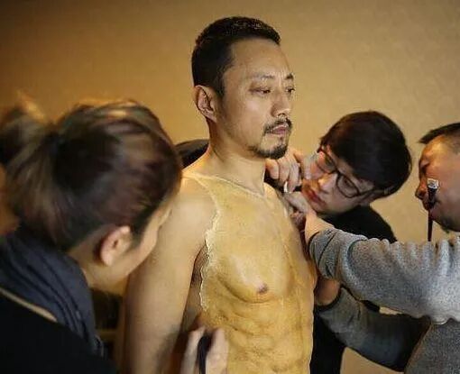 电影《老炮儿》中,张涵予就曾穿过高级硅胶的假皮肤。