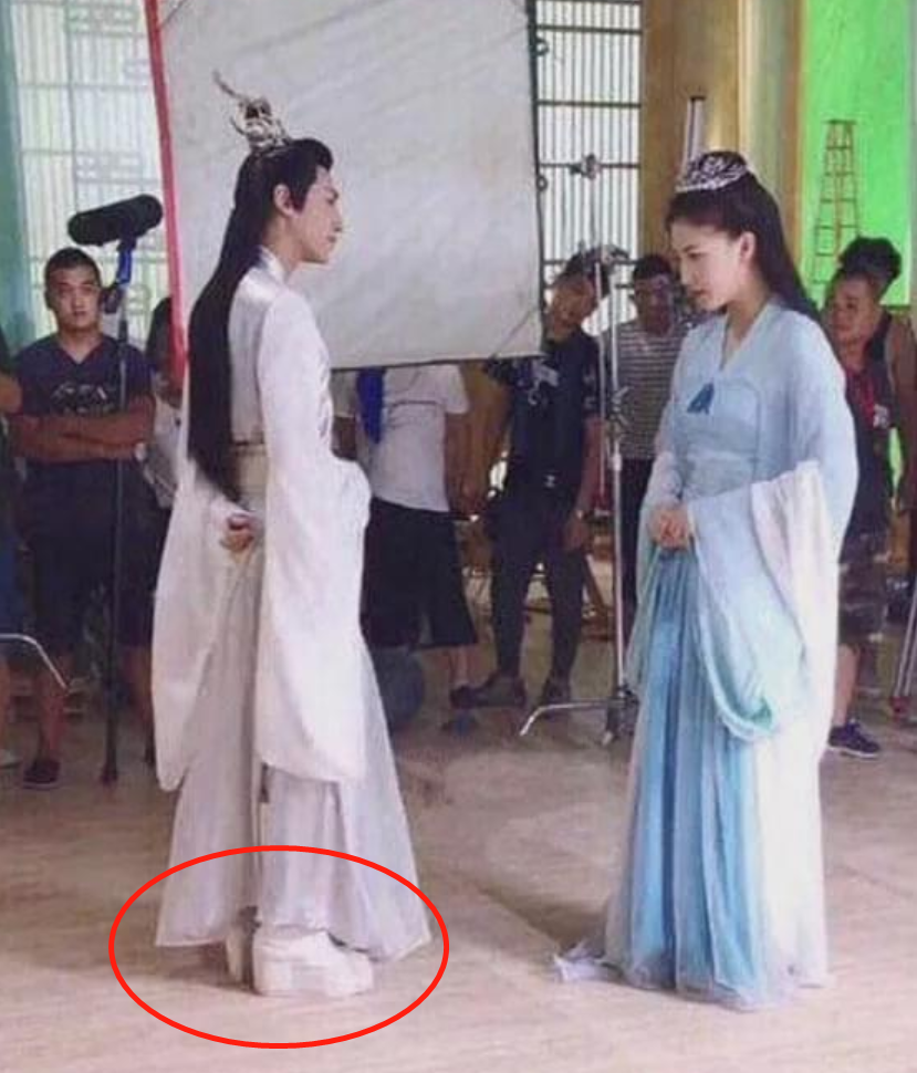 在拍摄《香蜜沉沉烬如霜》时,剧组流传出来的拍摄花絮中能看到,他脚踩着“恨天高”和女星对戏。