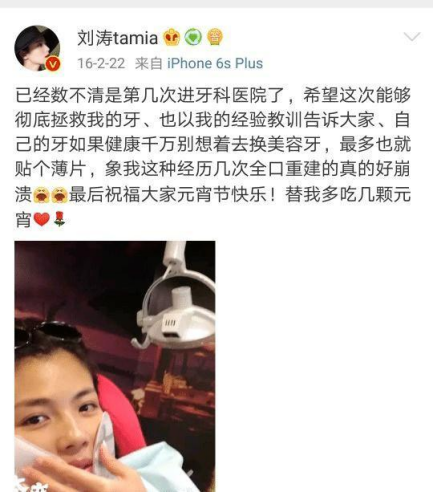 刘涛的烤瓷牙价值不菲,全部进口,一口牙花了300万。