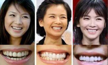像刘涛,就拔掉了自己原本的满口牙齿,换成了“小灯泡”一般亮白的烤瓷牙。