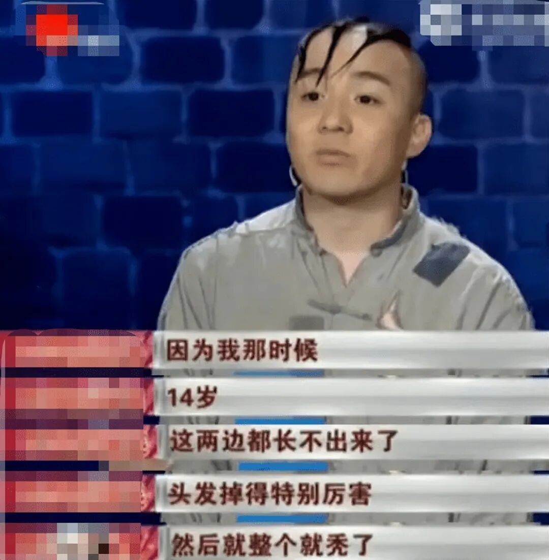 从年幼时的一夜爆红,到后来他因为头发而产生的自卑与抑郁,成了他在节目里唯一的谈资。