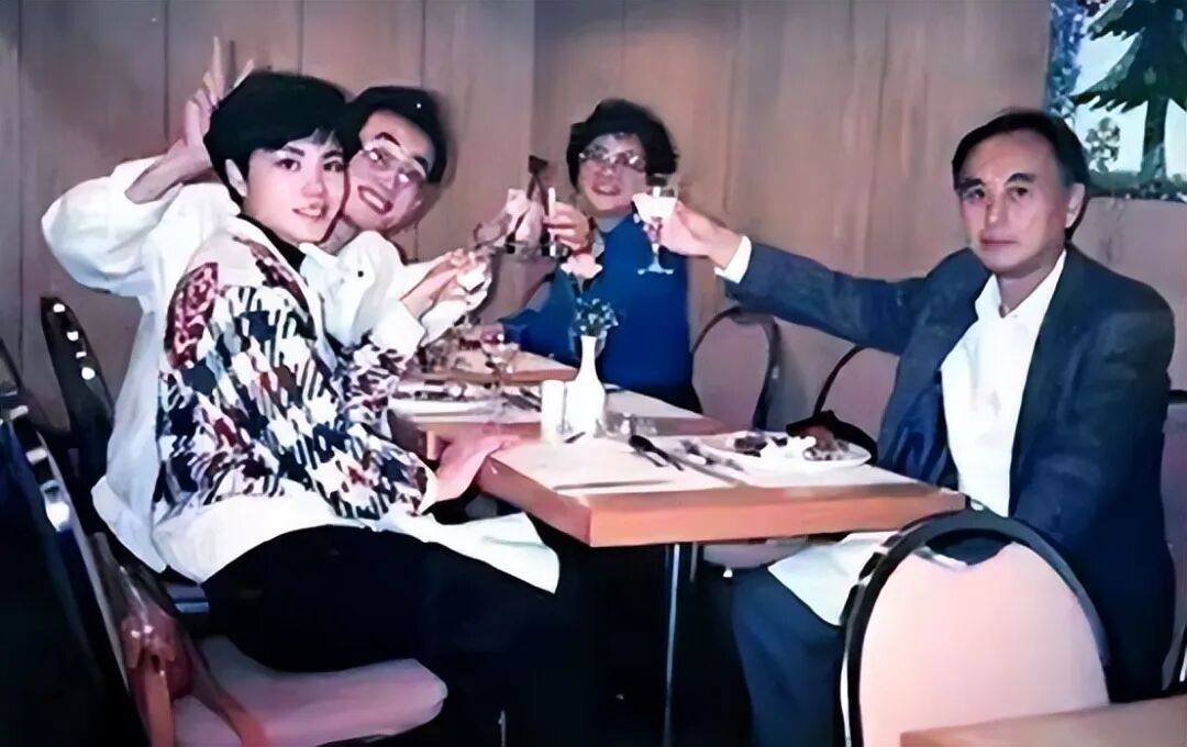 值得一提的是,爱情道路上一波在折的王菲,在亲情上也一样。这张照片是她记忆中为数不多的全家福,看起来除了父亲一脸严肃外都挺开心的。