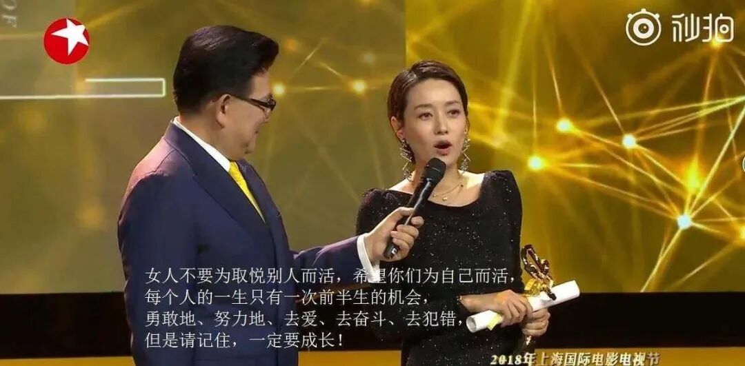 随后,又通过主演的电视剧《我的前半生》获得白玉兰视后,霸气回归。