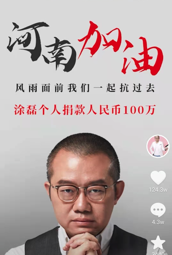 值得一提的是,2021年7月21日,涂磊拼拼凑凑为河南赈灾捐款了100万。