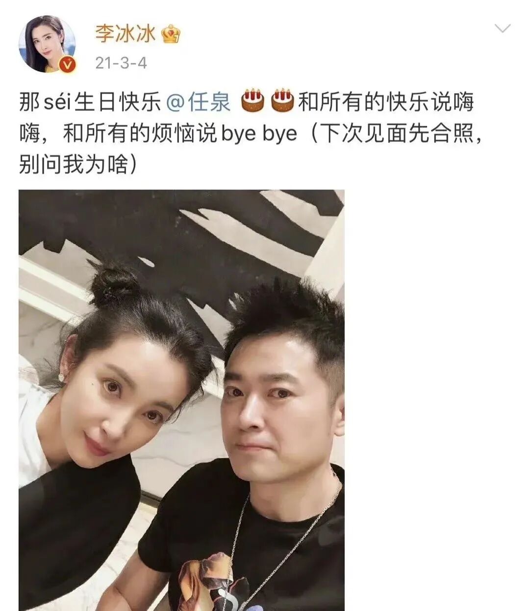 李冰冰最好的圈内好友是任泉,两人是同班同学,后来还一起拍戏,每年都会为对方送上生日祝福,并隔空“撒狗粮”。有网友曾问李冰冰,你什么时候嫁给任泉?