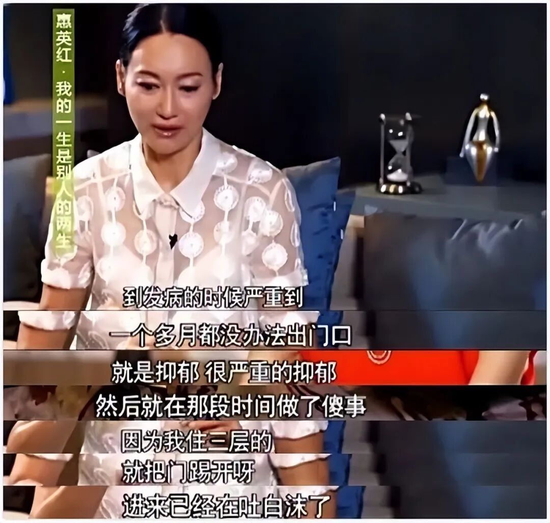 惠英红是影后,22岁就拿到了金像奖的最佳女主角,可是事业并非一帆风顺,曾经跌入谷底,惠英红曾在采访中自爆自己曾想过自杀,得了很严重的抑郁症。