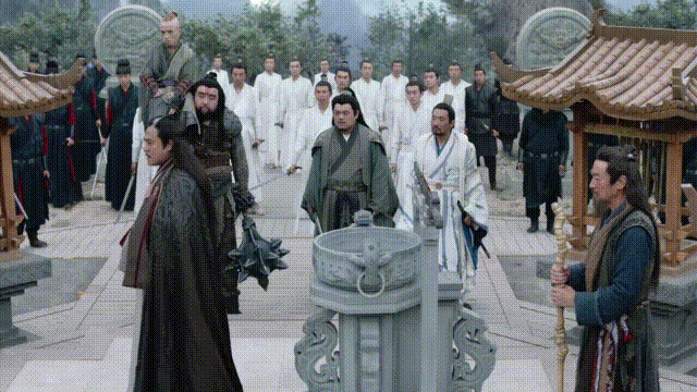 而在《山河令》里,可能剧组穷到没有钱请群演,于是直接复制黏贴了一些静态的。后面的人一动不动,还真让人调戏。
