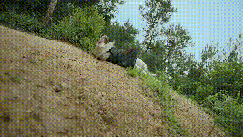 《香蜜》里,邓伦饰演的凤凰和杨紫饰演的锦觅下凡历劫时,遇到官兵追杀,无奈之下,凤凰抱着锦觅滚下山坡。