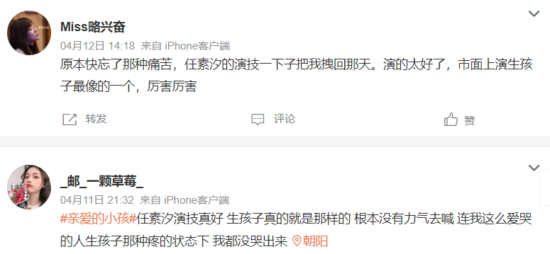 甚至有妈妈表示看任素汐演得生孩子,自己好像又回到了生娃的那天。