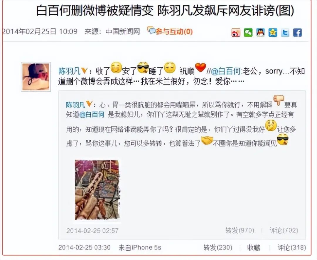同时,她和陈羽凡昔日秀恩爱的微博也被删除。