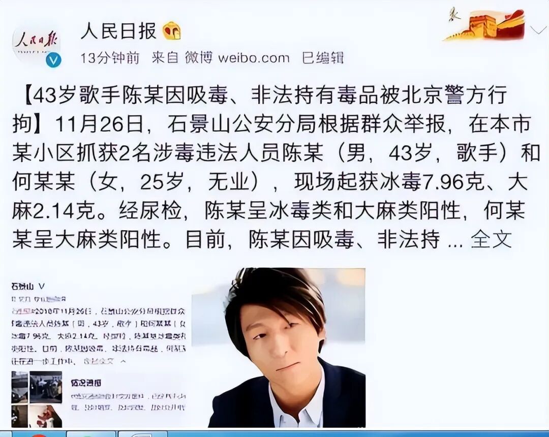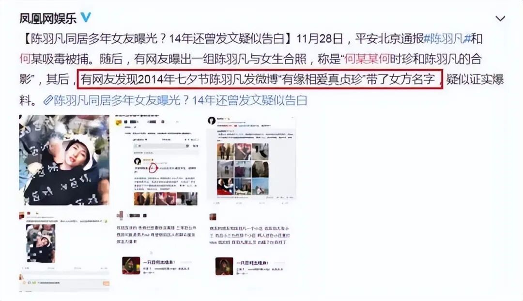 直到一年以后,陈羽凡因吸毒被抓,他的社交平台被网友拔了个底朝天。