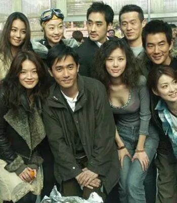连性感天后舒淇都遮得严严实实,只有她,不惧严寒穿着一件低胸装,傲人身材紧贴着梁朝伟的胳膊,弄得影帝很是尴尬。