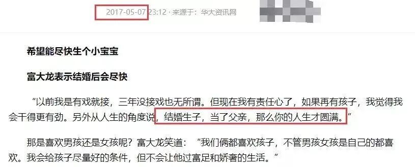 富大龙还曾在采访时透露,自己觉得当了父亲才是真正的人生圆满,但二人结婚12年未有子嗣,对他来说是件遗憾的事儿。