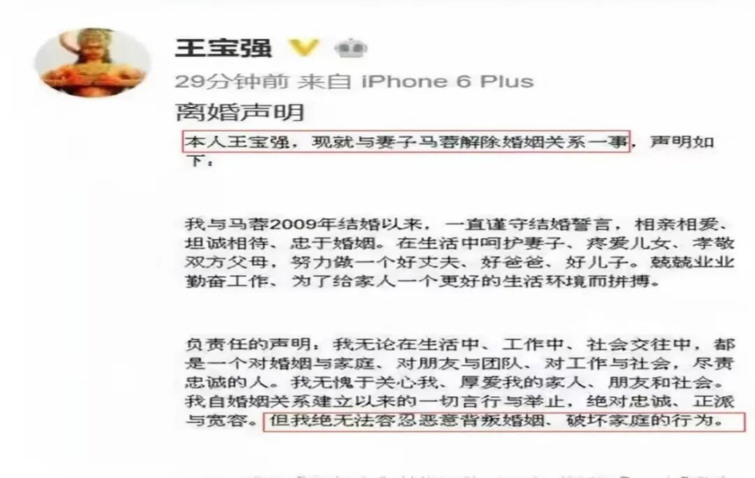 2016年8月,王宝强发文控诉马蓉出轨,并一纸将两人告上法庭,要求归还财产。