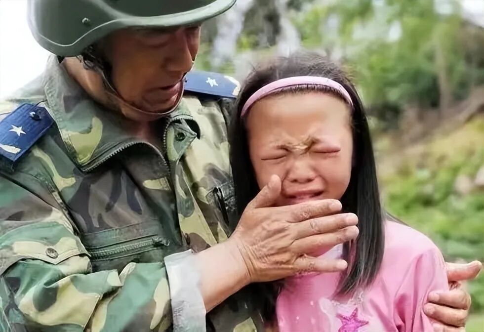 赶来抗震救援的老将军用粗粝的手掌为痛哭的小女孩笨拙地擦眼泪,边擦边柔声说:“别哭,一切都会好起来。”