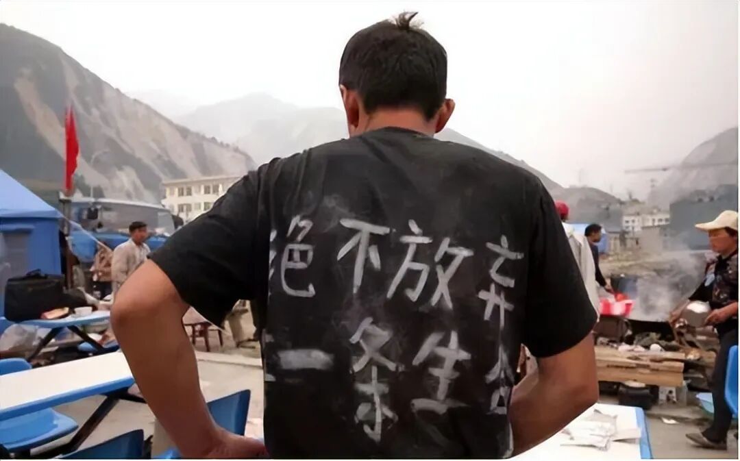 这名救援队员不知道从哪里来,叫什么名字,但他背后写下的话代表了每一个救援人员的心声: