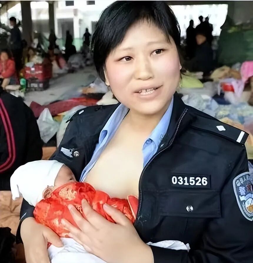 蒋小娟在地震灾民庇护所看到一名灾区孤儿饿得直哭,她毫不犹豫当众解衣为婴儿喂奶。