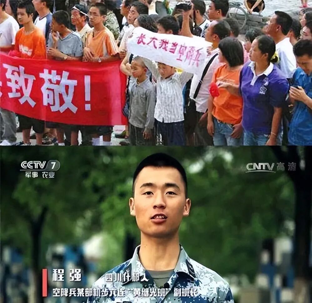 当年汶川群众队伍里高举“长大我当空降兵”的小男孩程强,如今真的当了空降兵,而且还是英雄部队“黄继光”班的副班长。