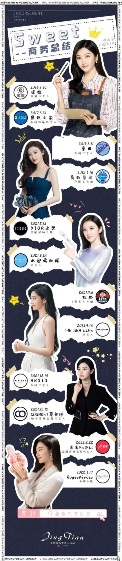 原本景甜的商业代言就不多,有网友晒出景甜的商务总结,截止到今年3月景甜仅有12个品牌合作。