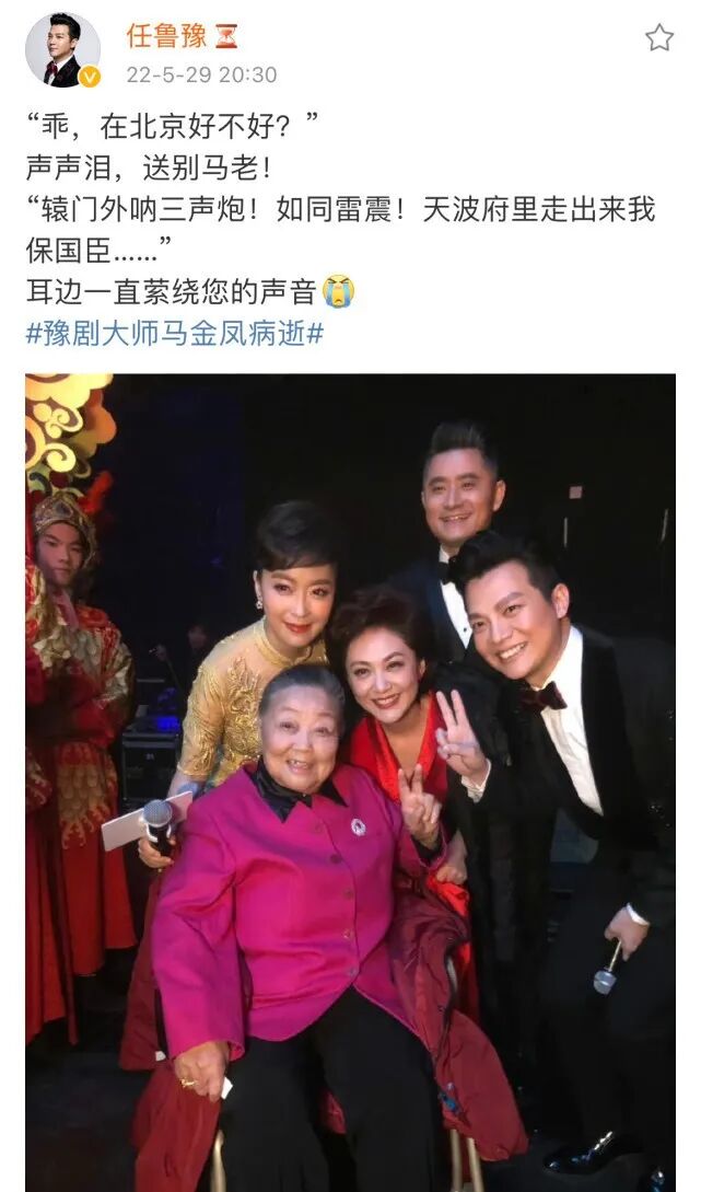 在得知马金凤老师逝世后,央视主持人任鲁豫、张泽群等人都发文悼念。