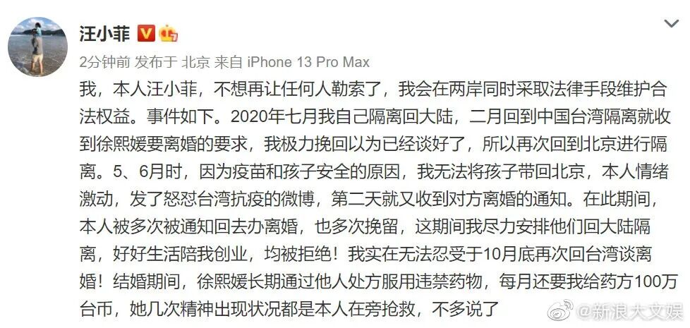 看到汪小菲的这条微博,网友们都炸了。